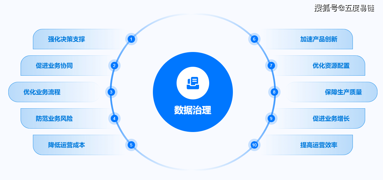 “五度易链” 大数据治理解决方案,深度融合大数据与AI技术,针对政务、产业、制造、金融、生物医药等多行业领域,以实体业务流程及数据需求为映射,提供高效、精准的数据治理解决方案及服务,助力行业数据的整合、分析与应用,赋能企业数字化转型升级,驱动企业经营提质增效。企业能够系统化地构建数据治理体系,充分释放数据价值。